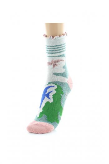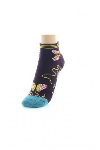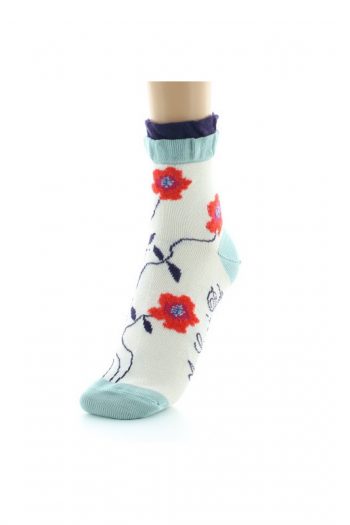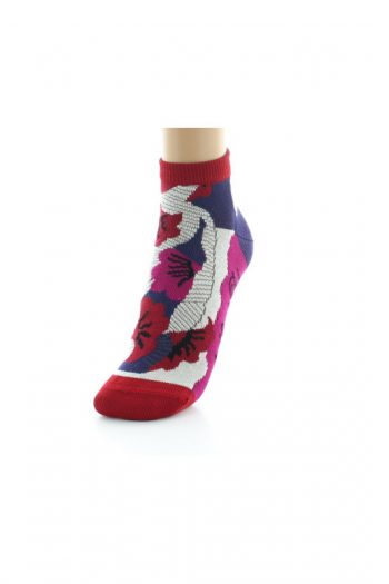 Mi-chaussettes 40D Rouge Fleurs Marines