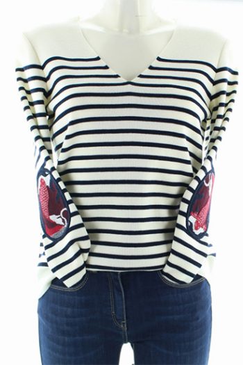 Pull Marin Rayé Carpe col V