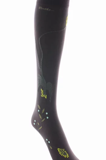 Mi-Bas 40D Prune Oiseau Lyre Gris Jaune