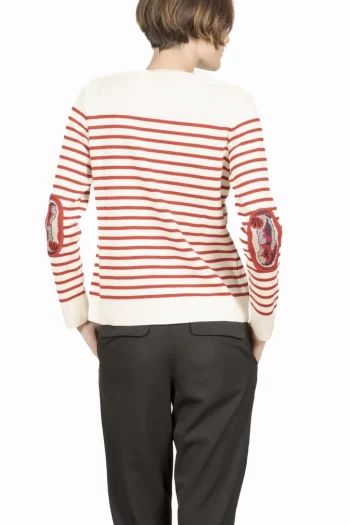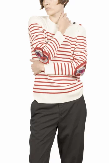 Pull Marin Femme Rayé Rouge Coquelicots Col V