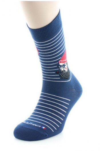 Les chaussettes simples Dagobert à l’envers sont tricotées en coton d’Egypte à 4 fils et vanisées en élasthanne. Elles ont donc une maille bien dense et sont souples.