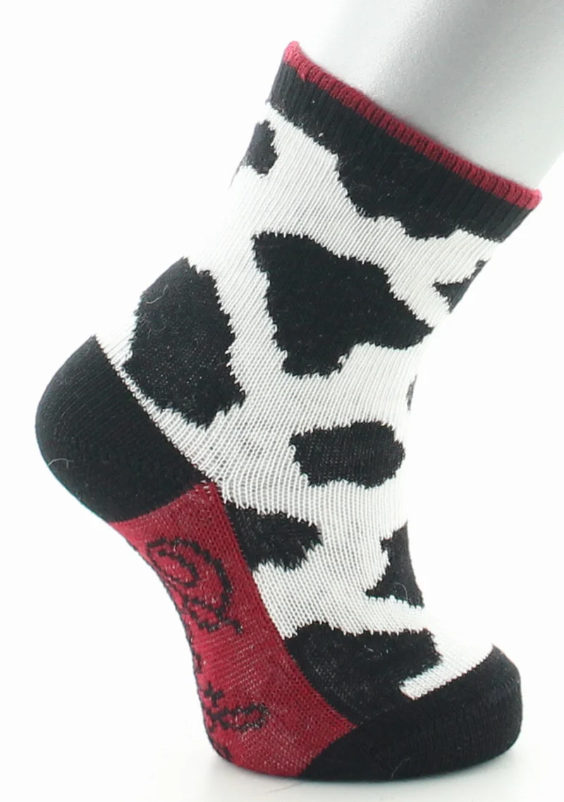 Le modèle est renforcé à la pointe et au talon par un fil supplémentaire. L’élastique est suffisamment large pour tenir en place tout au long de la journée sans comprimer le mollet. La vache fait partie des modèles les plus emblématiques de la marque. Un motif amusant qui parle à toutes et à tous!