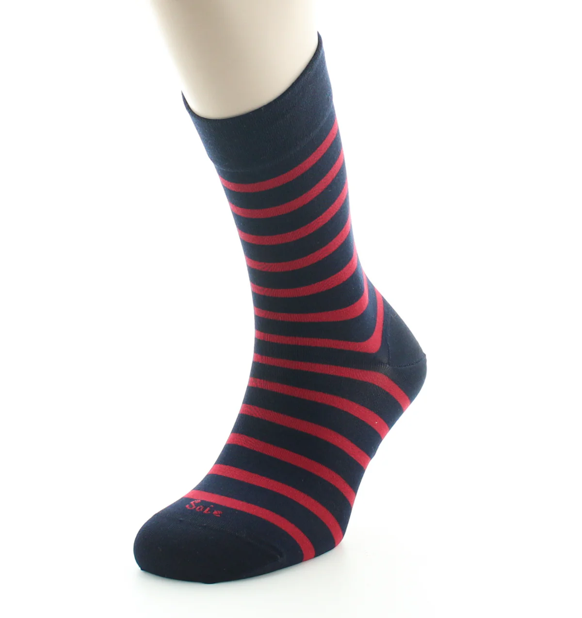 Chaussettes soie marine rayures rouges