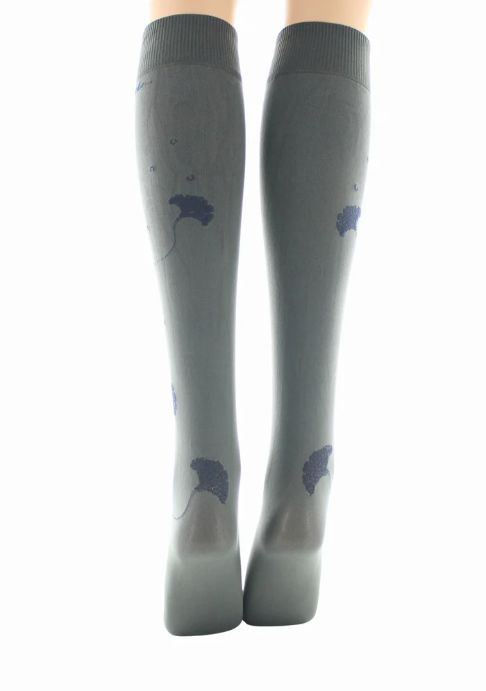 Ces mi-bas 40D « ALBIZIA » Kaki jouent la finesse avec ses branches et ses fleurs marine. Un motif végétal discret qui apporte une note naturelle et élégante à vos jambes. Découvrez le collant du même motif ICI