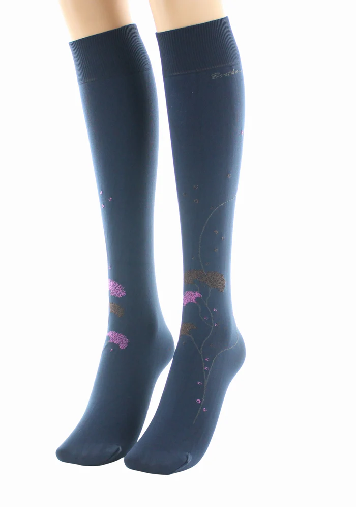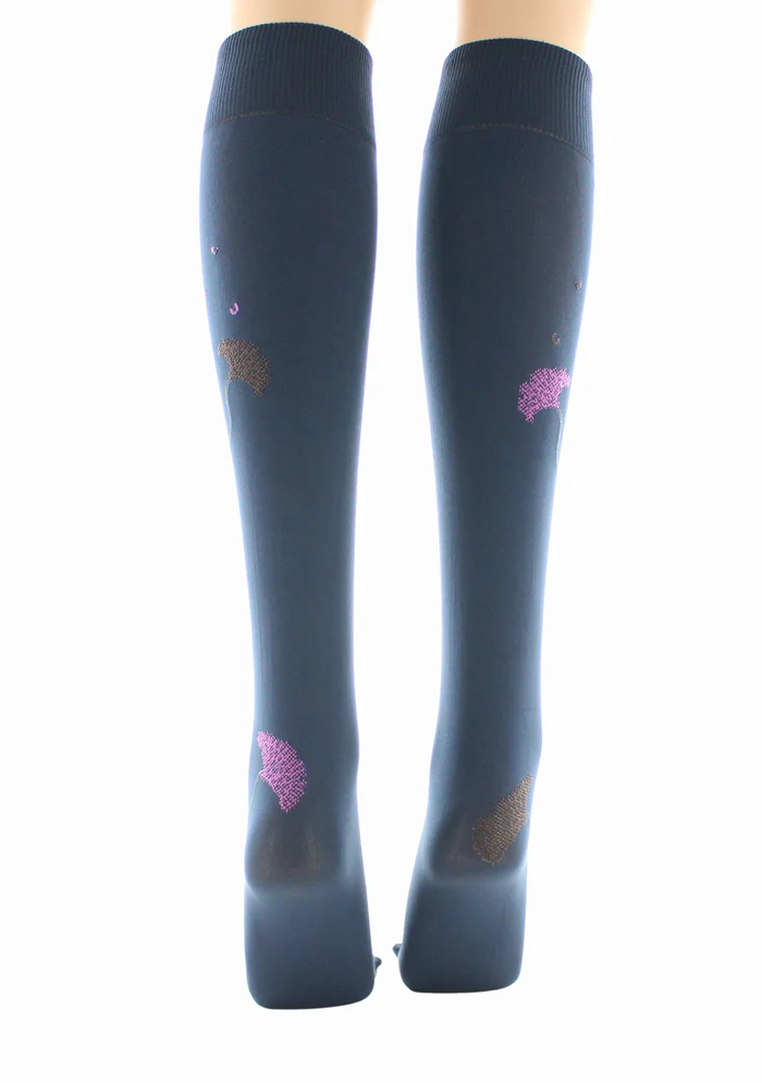 Ces mi-bas 40D « ALBIZIA » Marine et Rose jouent la finesse avec ses branches grises soulignées de petites feuilles rose et de touches maronnées. Un motif végétal discret qui apporte une note naturelle et élégante à vos jambes. Découvrez le collant du même motif ICI