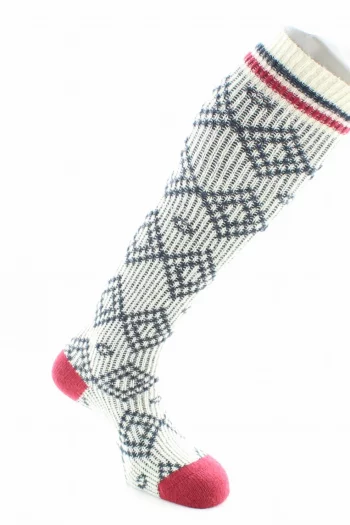 Chaussettes Hautes Jacquard Laine Alpaga Blanc